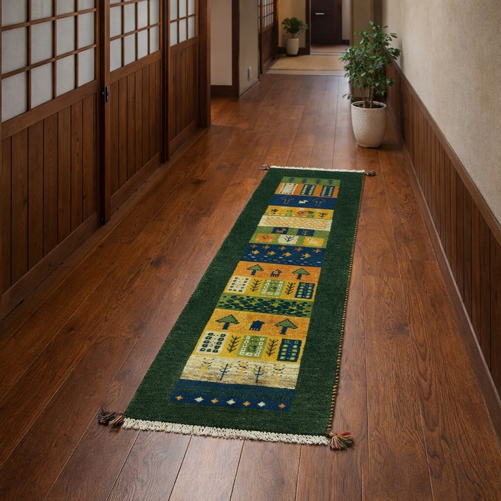 ペルシャギャッベ( ギャベ )ラグ ベッドサイド 廊下 ランナー No.GK-197